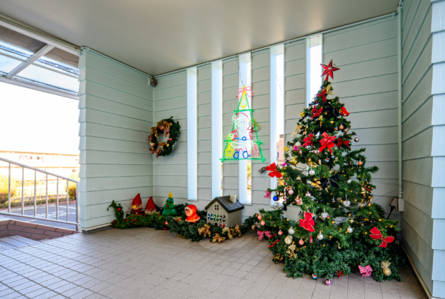 開院以来、自宅のようにくつろげる暖かいアットホームな医院づくりを心がけてきました。病気の子どもたちや看病で疲れた家族の気持ちを和ませるように、クリニックの周りを四季の花々で彩り、季節ごとに待合室のギャラリーの飾りつけを変えています。特にクリスマスのイルミネーションと飾りつけは好評です。
